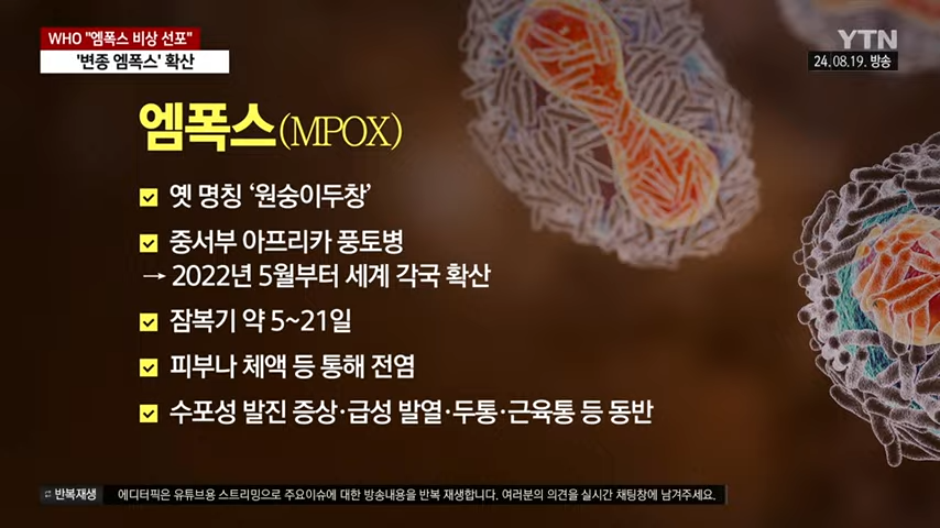 최근 엠폭스는 세계보건기구(WHO)에서 주의해야 할 질병으로 분류되어 전 세계적으로 관심을 받고 있으며, 예방 접종과 같은 예방 조치도 일부 지역에서 시행되고 있습니다.