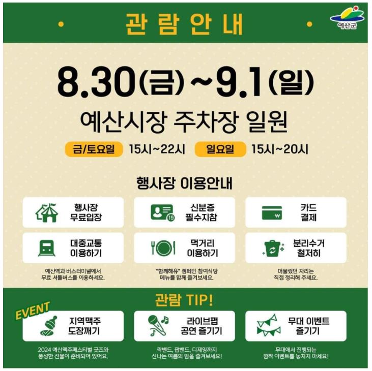 작년에 이어 올해에도 많은 관심을 받고 있는 예산 맥주 페스티벌을 방문해 보세요.