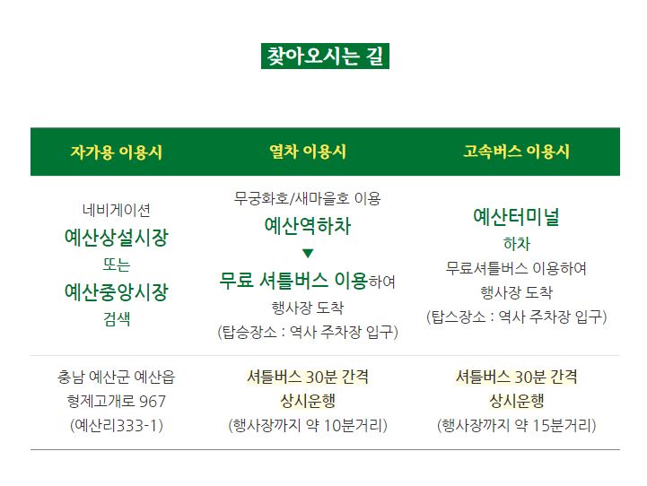 예산역까지 셔틀버스도 운행된다고 하니 참고하세요.